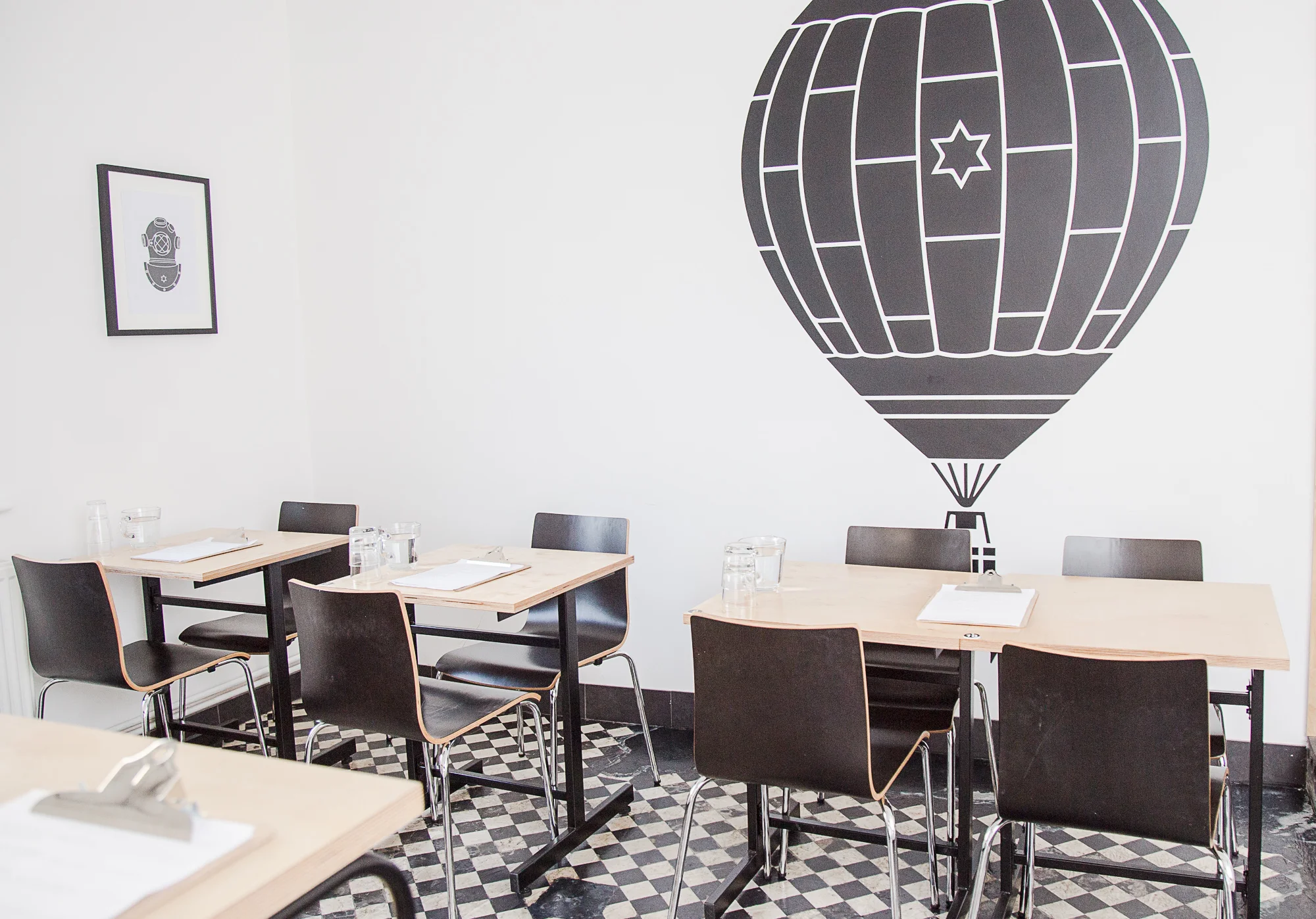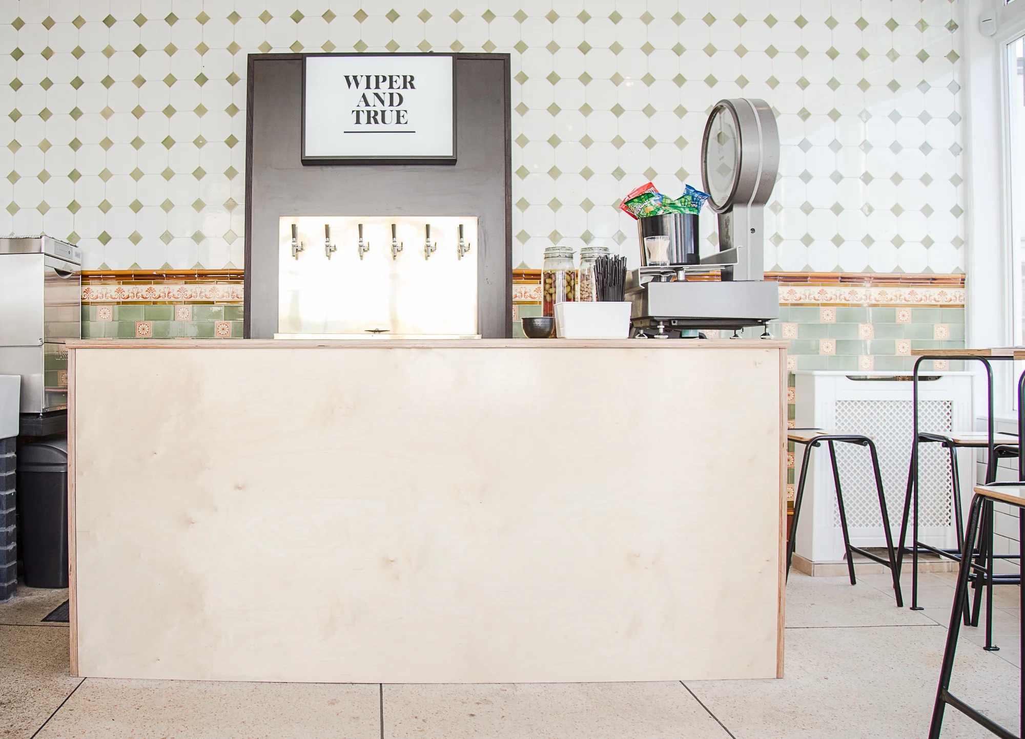 CUSTOM BIRCH PLY BAR AND TABLES BY WE ARE SNUG, THE OLD BUTCHER'S WIPER AND TRUE BAR, NORTH STREET, BRISTOL.